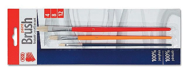 Univerzálna sada troch plochých štetcov ICO vo veľkostiach 4, 8 a 12 pre školu, hobby aj dielňu. Ponúka kvalitné štetiny, pohodlnú drevenú rukoväť s farebným lakom a spoľahlivý rovnomerný náter na rôznych povrchoch.
