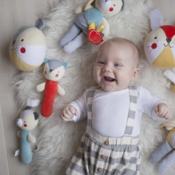 Dizajn PETIT COLLAGE kombinuje kontrastné vzory a pestré farby pre vizuálnu stimuláciu, zatiaľ čo ľahká konštrukcia uľahčuje držanie drobnými ručičkami. Udržateľná voľba pre rodičov, ktorí hľadajú bezpečnú a ekologickú hračku pre novorodenca.