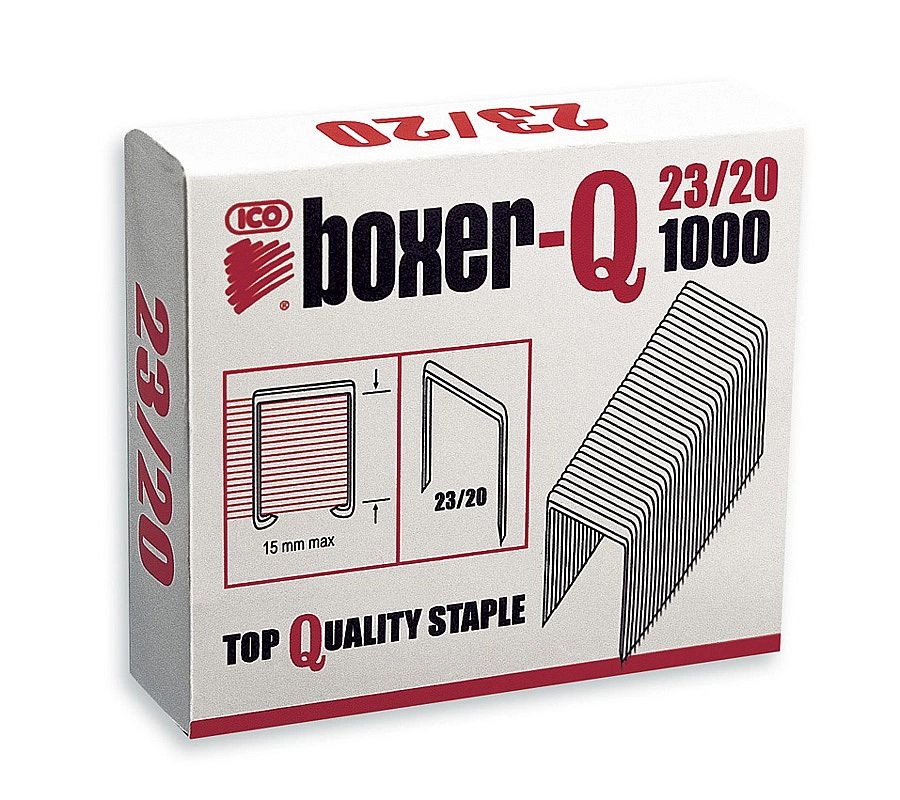 Zošívacie sponky BOXER‑Q 23/20 sú navrhnuté pre náročné použitie v kanceláriách, archívoch aj prevádzkach. Vďaka pozinkovanej povrchovej úprave poskytujú vysokú odolnosť proti korózii a stabilný spoj aj pri častom používaní. Rozmer 23/20 umožňuje zošívať silné zväzky papiera až do hrúbky 16 mm.