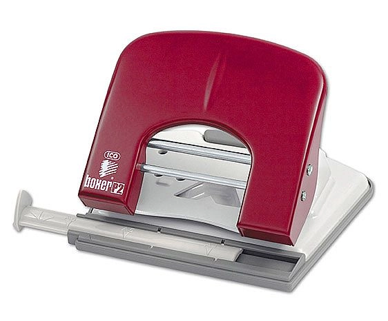 Dierovačka BOXER P2 v červenom prevedení je odolná kovová pomôcka navrhnutá na časté kancelárske používanie. Zvládne pohodlne prepichnúť až 30 listov naraz a vďaka presnému ukazovateľu stredu a posuvnému pravítku ľahko nastavíte požadovaný formát DIN.