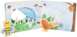 Táto kvalitná drevená knižka SMALL FOOT je navrhnutá pre malých prieskumníkov od 12 mesiacov. Vďaka farebným ilustráciám a dvom dreveným figúrkam včielky a vtáčika deti ľahko a hravo spoznávajú zvieratká aj rastliny. Praktické suché zipsy umožnia figúrky pripevniť na zadnú stranu knižky, takže sa nikde nestratia.
