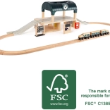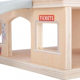 Premeňte detskú izbu na rušnú stanicu! Táto drevená vláčikodráha s dvojposchodovou stanicou zo 100% FSC dreva ponúka 31 dielov, vrátane vlaku, obchodu, automatu na lístky, písacej tabule s destináciami a pracovných hodín. Vďaka otvorenej streche je hranie jednoduché a prehľadné a hlbší profil koľajníc umožňuje jazdu aj batériovým vláčikom (nie sú súčasťou).