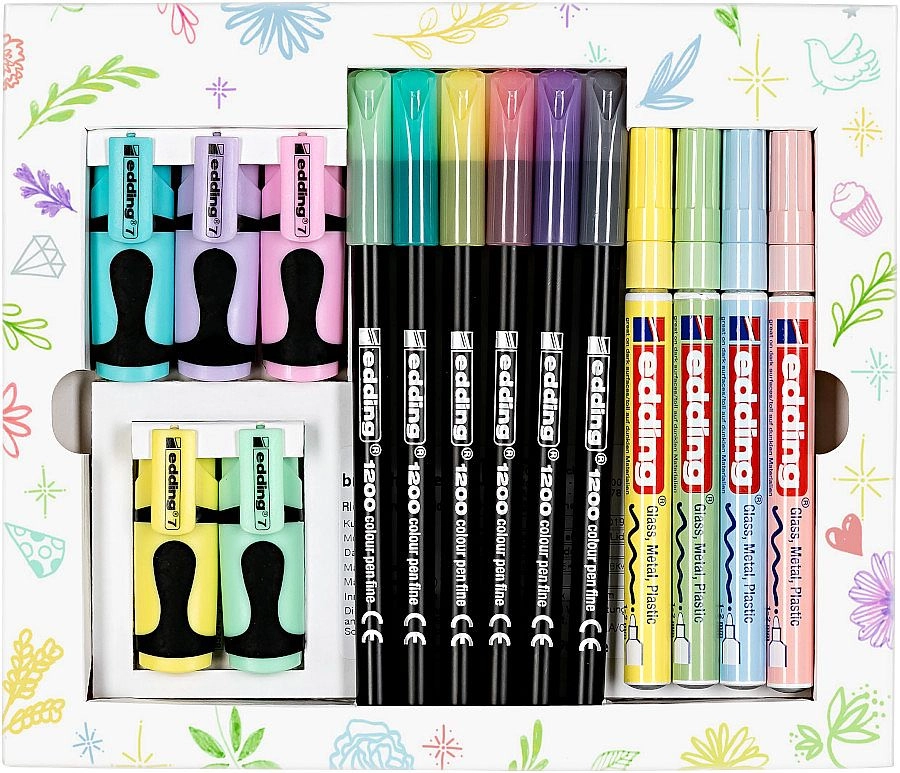 Táto darčeková sada EDDING Pastel Celebrations je ideálna pre milovníkov jemných farieb a moderného kreatívneho tvorenia. Ponúka tri typy písacích potrieb s rôznymi šírkami a tvarmi hrotov, takže ľahko vytvoríte nápisy, linky, zvýraznenie aj dekorácie na rôznych povrchoch. Vďaka pastelovej palete budú vaše projekty pôsobiť elegantne a trendy.