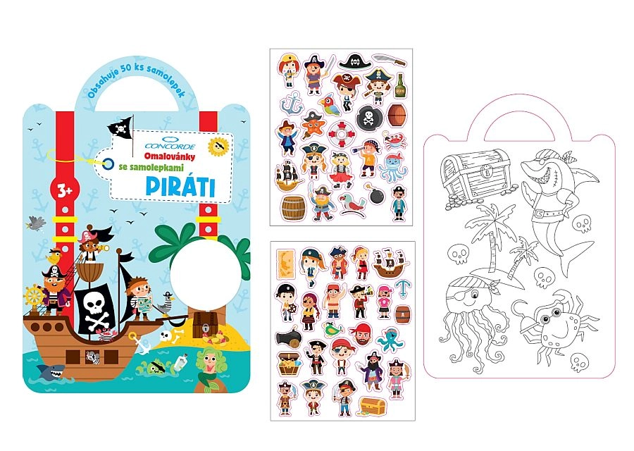 Zábavné omaľovánky so samolepkami s pirátskou tematikou potešia každého malého tvorcu. Obsahujú 20 obrázkov na vymaľovanie a 50 samolepiek, ktoré podporia fantáziu a kreativitu. Vďaka praktickému uchu na prenášanie sú ideálne aj na cesty.