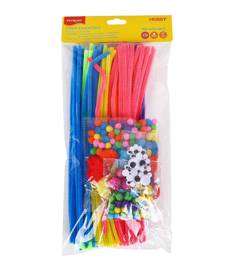 Praktická sada s bambuľkami, chlpatými drôtikmi aj samolepiacimi očkami v mnohých farbách a veľkostiach. Ideálny štart pre desiatky kreatívnych nápadov.