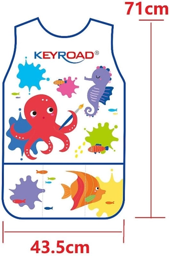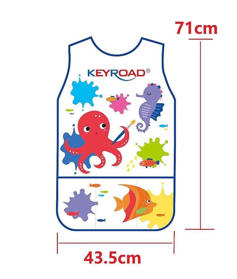 Praktická detská zástera na maľovanie a tvorenie bez rukávov od KEYROAD chráni oblečenie pred nečistotami vďaka vodeodolnému, ľahko umývateľnému povrchu. Ponúka tri priestranné vrecká na štetce a pastelky, pohodlný strih a veselý podmorský dizajn pre mladšie školské deti.