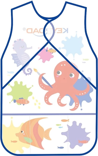 Praktická predná časť s trojicou vreciek udrží drobné pomôcky po ruke. Okraje lemované odolným materiálom a prekrývacie panely vpredu poskytujú lepšiu ochranu trička aj mikiny. Farebné podmorské motívy (chobotnica, rybky, morský koník) deti nadchnú a povzbudia k tvoreniu.