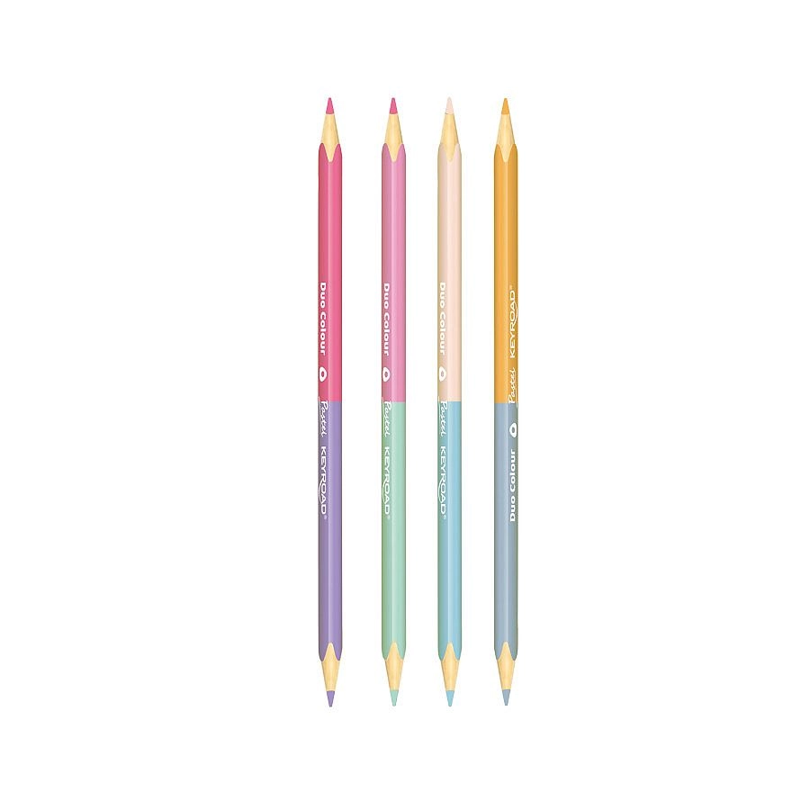 Pastelky Keyroad Duo Pastel sú skvelou voľbou pre deti, študentov aj kreatívnych dospelých. Každá pastelka spája dve zladené farby v jednom tele, takže ušetrí miesto v peračníku a rozšíri vašu paletu na pôsobivých 24 odtieňov. Jemné pastelové tóny zabezpečujú elegantný vzhľad kresieb a obzvlášť efektne pôsobia na tmavom papieri.