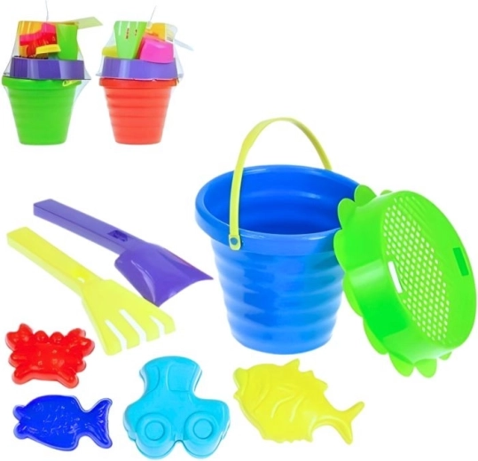Detská súprava na piesok so 7 kusmi príslušenstva (vedro, sitko, lopatka, hrable a 3 formičky) na zábavu v pieskovisku, na pláži aj na záhrade. Vyrobená z kvalitného a odolného plastu vhodného pre detské ruky. Podporuje fantáziu, kreativitu a jemnú motoriku. Dostupná v troch farbách. Cena je za jeden set.