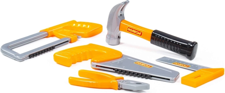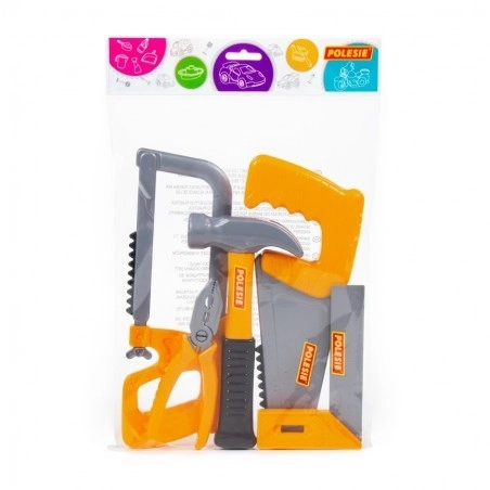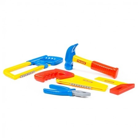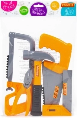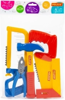 Kladivo, uhlomer, kombinované kliešte a dve píly napodobňujú skutočné náradie, takže si deti užijú autentickú hru na opravára.