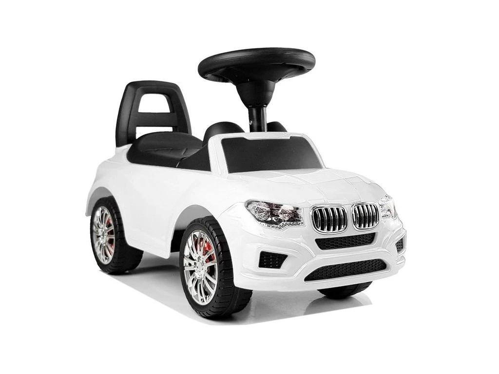 Štýlové detské odrážadlo SuperCar v bielej farbe ponúka stabilnú konštrukciu, pohodlné sedadlo s operadlom a zvukové efekty na volante (klaksón, zvuk motora, 3 melódie sirény). Praktický úložný priestor pod sedadlom pojme drobnosti na cestu. Jazda odrážaním podporuje rovnováhu, koordináciu a jemnú aj hrubú motoriku. Maximálna nosnosť je 50 kg, napájanie zvukov: 2× AA (R6) – odporúčané alkalické batérie.