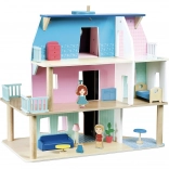 Domček zaujme svojím farebným prevedením s ružovou fasádou a modrou strechou. Ponúka niekoľko podlaží, balkóny a je vybavený nábytkom a dekoráciami.