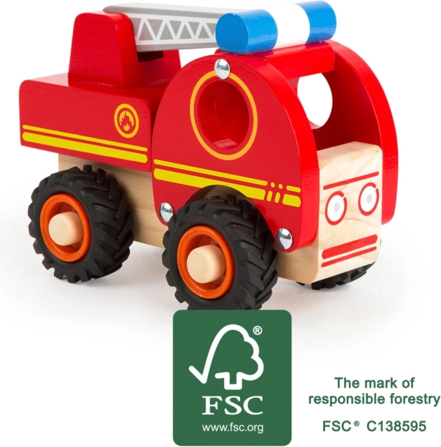 Toto drevené hasičské auto je ideálne pre malých fanúšikov záchranárskych akcií. Vyrobené zo 100% FSC certifikovaného dreva s pohyblivým rebríkom a tichými pogumovanými kolieskami, ktoré zaistia hladkú jazdu.