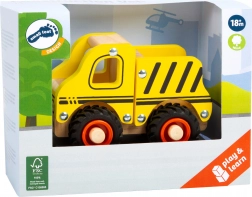 Toto kompaktné stavebné vozidlo z certifikovaného FSC dreva nadchne každého malého staviteľa. Vďaka pogumovaným kolesám sa pohybuje ticho a isto po rôznych povrchoch a zároveň je bezpečné do detskej izby. Prirodzená kombinácia dreva a výraznej žltej farby podporuje zvedavú hru a rozvoj zručností.