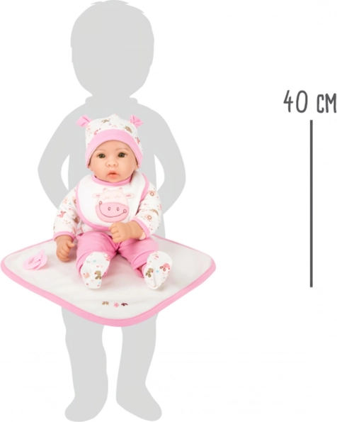 Súčasťou balenia je oblečenie pre bábiku, cumlík a dečka zladená v jemných farbách. Oblečky sa jednoducho obliekajú aj vyzliekajú, takže deti trénujú jemnú motoriku pri každodennej starostlivosti o svoju bábiku.
