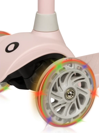 Nastaviteľná výška riadidiel v štyroch krokoch rastie s vaším dieťaťom, ložiská ABEC-7 sa postarajú o hladkú jazdu a LED svetlá v kolesách sa rozsvietia pri pohybe – bez batérií. Obmedzovač uhla riadenia 65° podporuje bezpečnejšie vedenie stopy a učenie správneho náklonu pri zatáčaní.