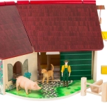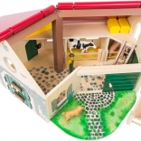 Táto drevená farma je navrhnutá tak, aby podporovala fantáziu detí. Vďaka detailom, ako sú otváracie strechy a posuvné dvere, si deti môžu prehrávať rôzne farmárske scenáre.