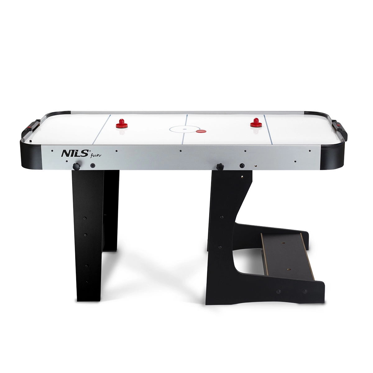 Skladací air hokejový stôl NILS Fun je ideálnou voľbou pre domácu zábavu počas daždivých dní aj večerov s rodinou. Robustná konštrukcia z MDF odolá bežnému opotrebeniu a stabilné nohy poskytujú istotu aj pri svižnej hre. Integrovaný ventilátor vytvára vzduchový vankúš, vďaka ktorému puk kĺže rýchlo a presne.
