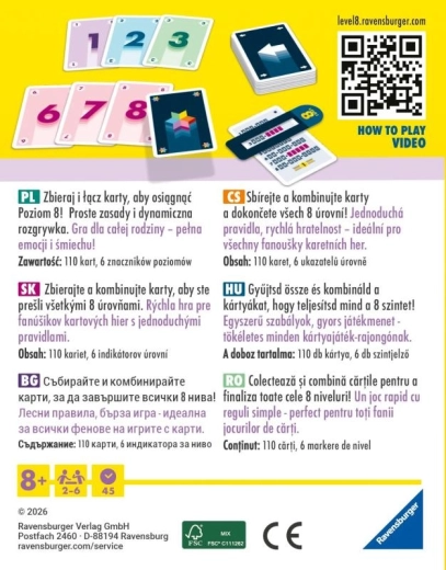 Level 8 je dynamická rodinná kartová hra, v ktorej postupne plníte sady úloh a snažíte sa prejsť všetkými ôsmimi úrovňami rýchlejšie než súperi. Vďaka prehľadným mechanikám a krátkemu hernému času sa ku hre budete radi vracať znova a znova.