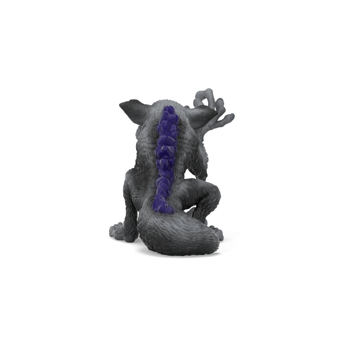 Kontrastné fialové ostne na chrbte a sivý „srstnatý“ povrch dodávajú figúrke drsný a nezameniteľný štýl.