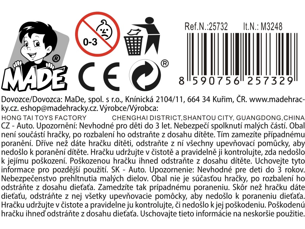Telo z die-cast kovu zvyšuje pevnosť a životnosť hračky aj pri intenzívnom hraní.