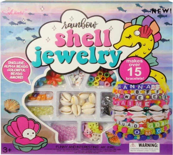 Sada farebných korálikov rôznych veľkostí a tvarov na kreatívnu výrobu originálnych náramkov. Obsahuje aj šnúrku na navliekanie. Rôzne tvary (mušličky, kvietky, písmenká), ľahké navliekanie a zábava pre deti od 3 rokov.