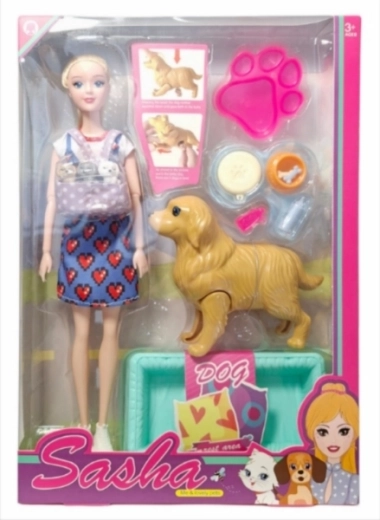 - Bábika, veľký pes (fenka), šteniatka, pelech, miska s kosťami, fľaštička, ďalšie doplnky