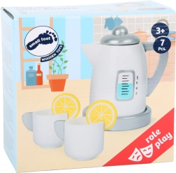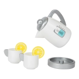 Sada obsahuje kanvicu s vekom a podstavou, dve šálky a plátky citróna, čo umožňuje deťom simulovať skutočné čajové večierky. Výrobok je vyrobený z kombinácie masívneho dreva a silnej preglejky, takže je zaručená jeho pevnosť a trvanlivosť.