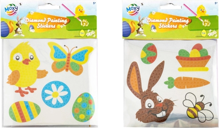 Diamantová mozaika na samolepkách je jednoduchý a zábavný spôsob, ako si vyrobiť krásne veľkonočné ozdoby na okná, darčeky, zošity či detské izbičky. Stačí postupne lepiť farebné akrylové kamienky podľa predlohy a počas pár minút vznikne trblietavý motív, ktorý poteší deti aj dospelých.