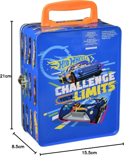 Tento štýlový modrý kufrík s grafikou pretekárskych áut a sloganom „Challenge Your Limits“ je skvelým riešením pre všetkých malých zberateľov. Vo vnútri nájdete vyberateľnú mriežku s 18 samostatnými priehradkami, ktoré udržia autíčka prehľadne oddelené a chránené. Robustná kovová konštrukcia a spoľahlivé prackové zapínanie zaistia bezpečné uloženie pri prenášaní.