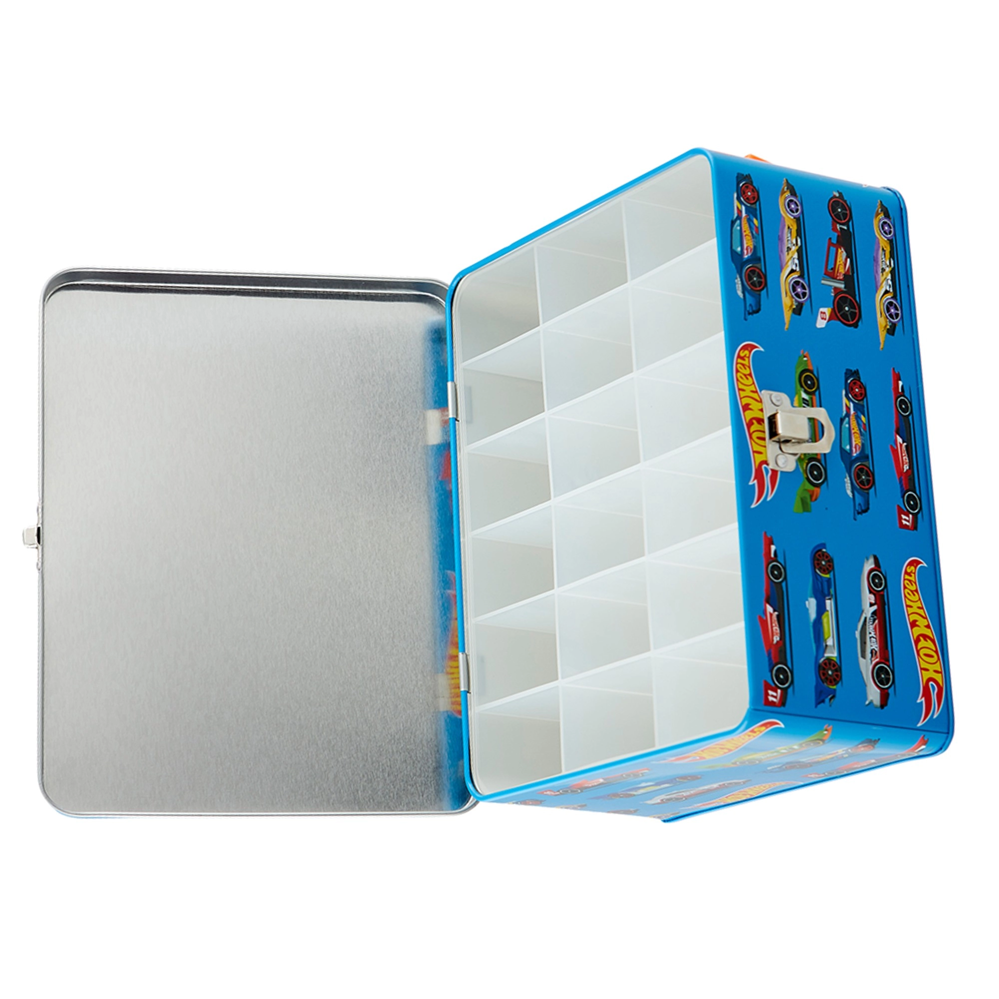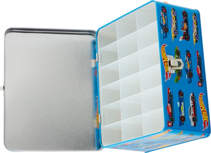 Praktický kovový kufrík na autíčka s licenciou HOT WHEELS od značky Klein bezpečne uloží až 18 modelov. Má odolné kovové telo, plastové ucho pre pohodlné prenášanie a kovový zámok proti samovoľnému otvoreniu. Ideálny na prehľadné uloženie a organizáciu malých áut na cestách aj doma.