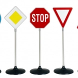 Sada piatich najpoužívanejších značiek (napr. STOP, Daj prednosť v jazde, Hlavná cesta, Prikázaný smer, Priechod pre chodcov) pomáha deťom rýchlo si osvojiť základné pravidlá.