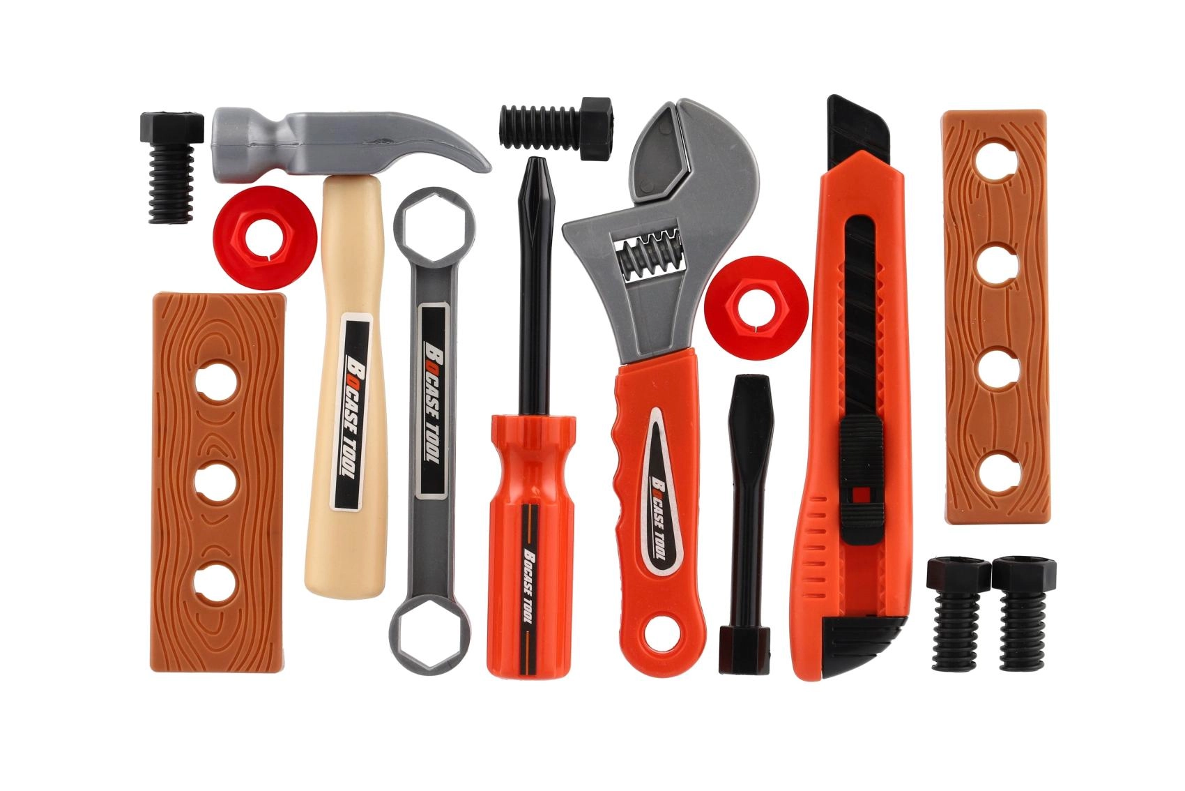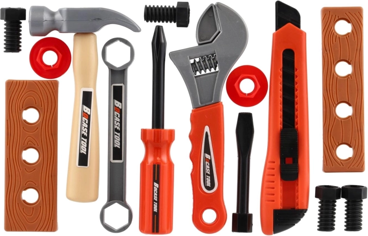 Plastové nástroje so zaoblenými hranami a nízkou hmotnosťou sú ideálne na prvé zoznamovanie sa s náradím. Deti si bezpečne skúšajú údery, uťahovanie aj meranie.