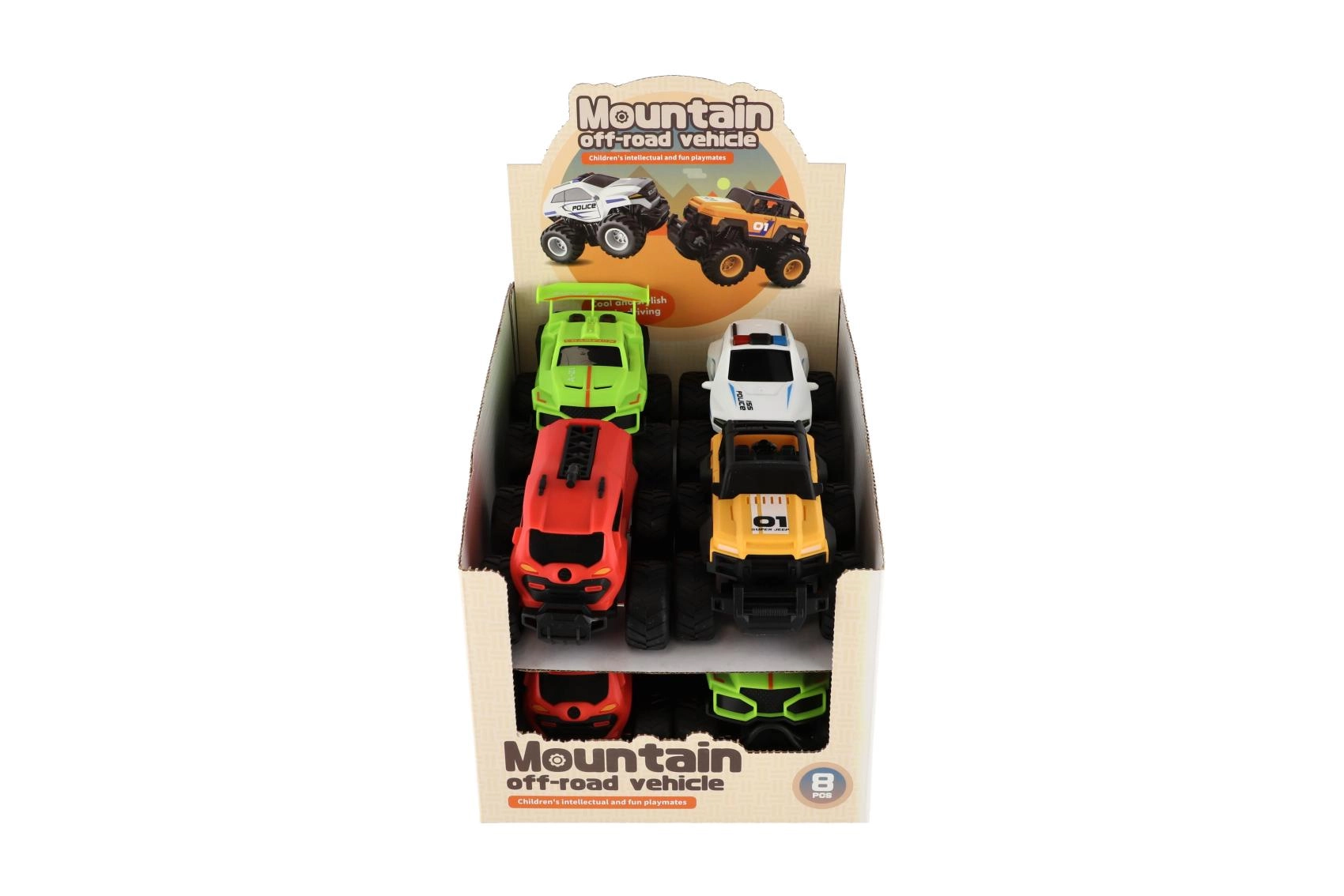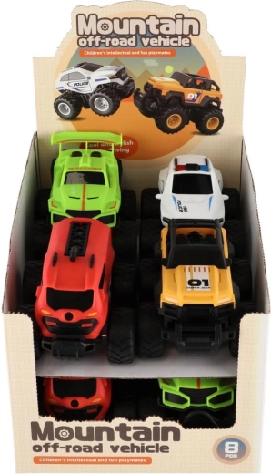 Objavte porciu zábavy s kompaktnými monster truckmi, ktoré zvládnu hrbole, koberce aj drobné prekážky. Zotrvačníkový pohon zabezpečuje svižnú jazdu bez batérií a veľké traktorové kolesá dodajú stabilitu aj v zákrutách. V balení nájdete 8 kusov v 4 rôznych dizajnoch, vrátane policajného a hasičského motívu – ideálne na preteky aj role‑play.