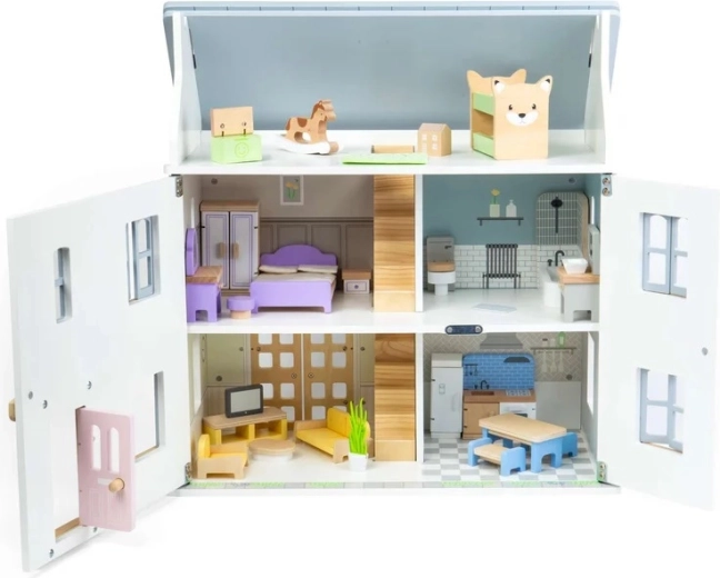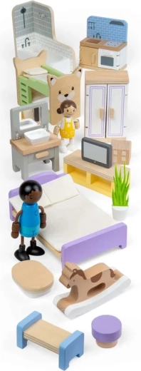 Sada obsahuje 31 starostlivo vyrobených dielikov pre obývaciu izbu, kuchyňu, kúpeľňu aj dve spálne – deti môžu ľahko zariadiť každú izbu a meniť usporiadanie podľa fantázie.