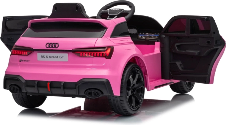 Ružové elektrické autíčko AUDI RS 6 Avant GT je kombináciou športového vzhľadu a praktickej výbavy pre každodennú radosť z jazdy. Vďaka štyrom výkonným motorom 4×35 W a batérii 12 V 9 Ah zvláda jazdu po chodníku aj na záhrade, zatiaľ čo mäkké EVA kolesá a predné i zadné odpruženie zaisťujú komfort a stabilitu.