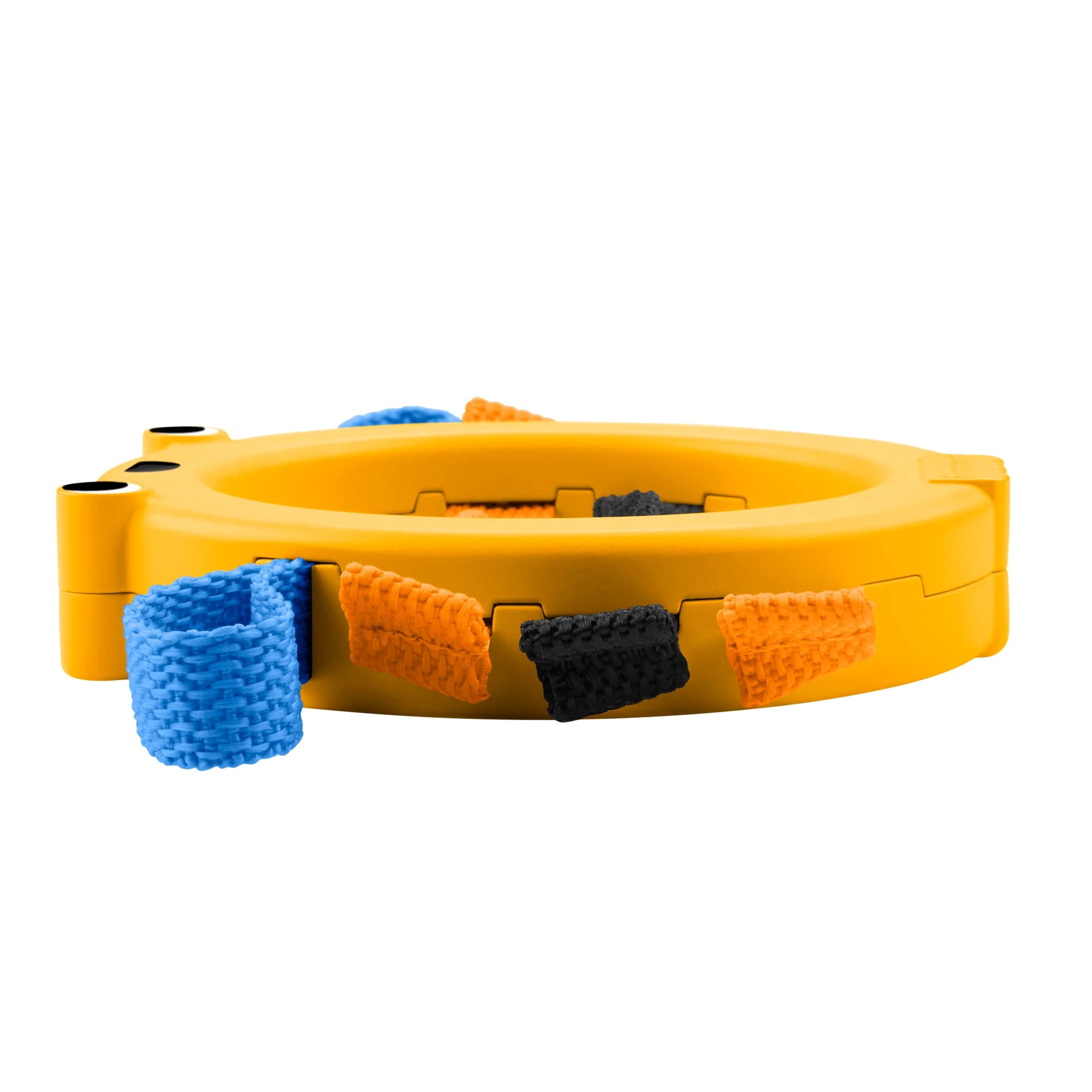 Ľahký plastový krúžok s priateľským motívom a mäkkými pútkami povzbudí dieťa k samostatnému držaniu, triaseniu a manipulácii.