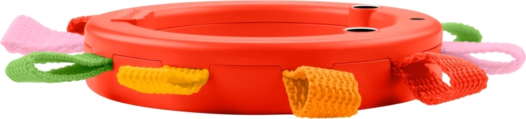 Kompaktný plastový krúžok s viacerými farebnými textilnými pútkami sa deťom skvele drží a podporuje prvé pokusy o uchopenie a prekladanie.