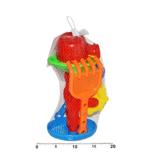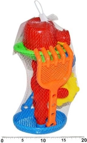 Detská súprava na piesok obsahuje 4 praktické kusy príslušenstva – kanvičku, lopatku, hrabličky a sito. Ideálna na hry v pieskovisku, na pláži aj na záhrade. Vyrobená z kvalitného a odolného plastu vhodného pre detské ruky. Podporuje fantáziu, kreativitu a jemnú motoriku.