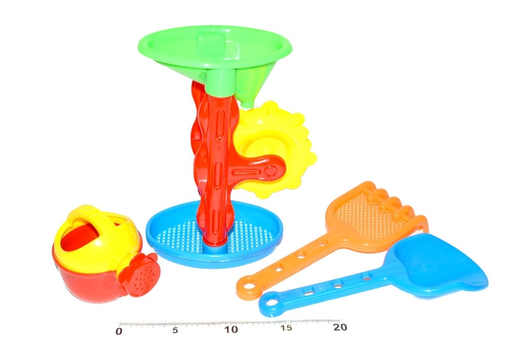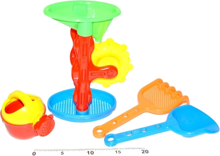 - Kompletná výbava: kanvička, lopatka, hrabličky a sito