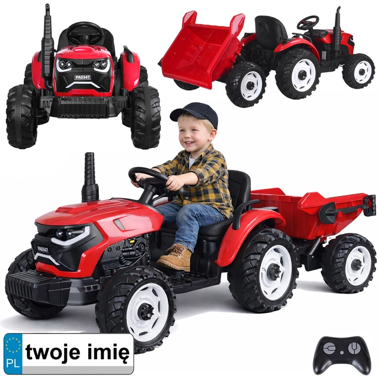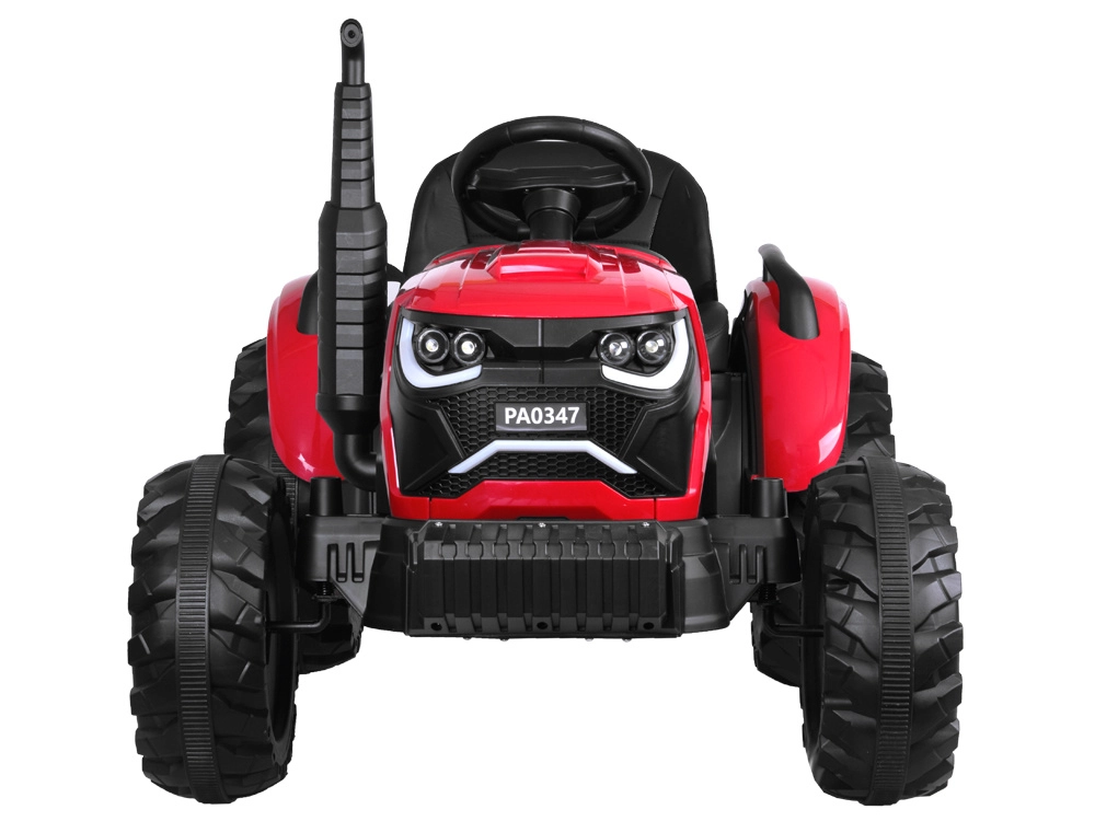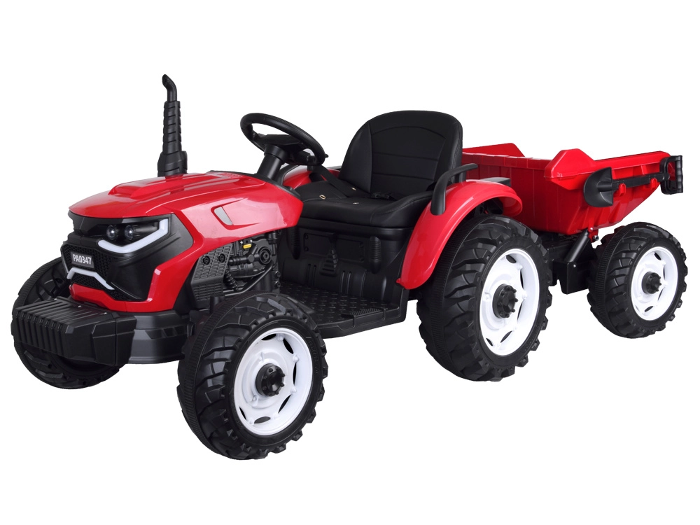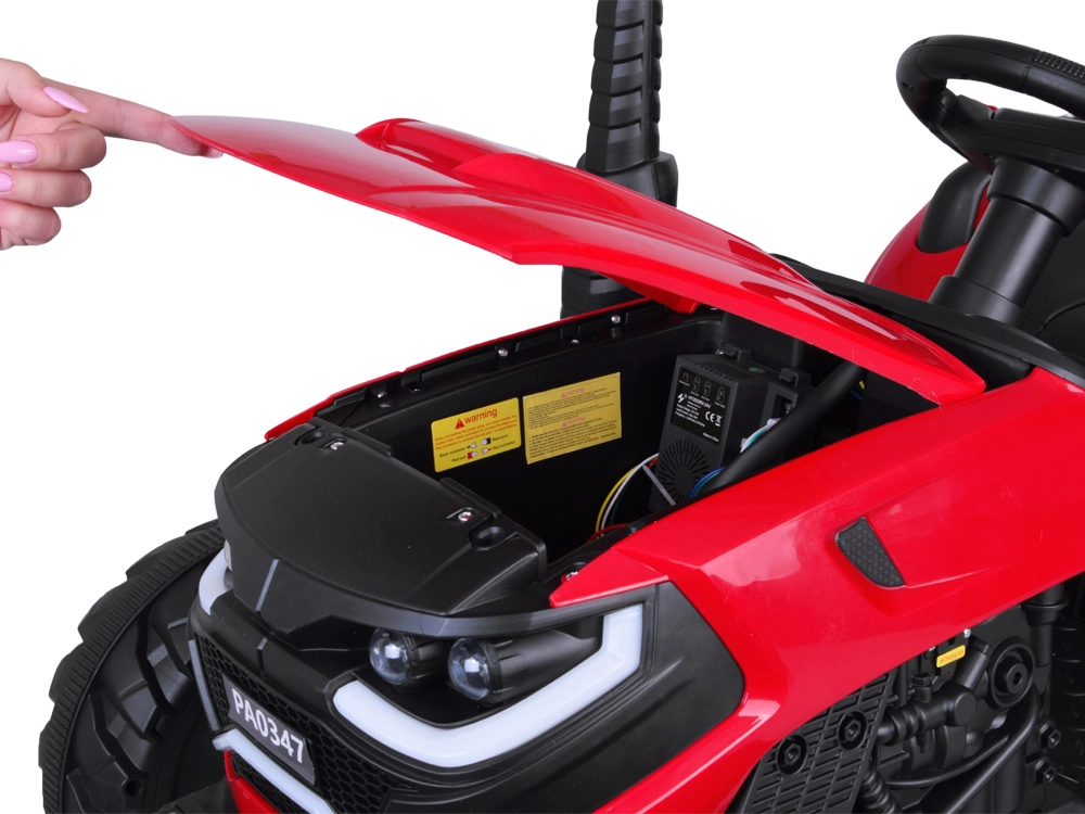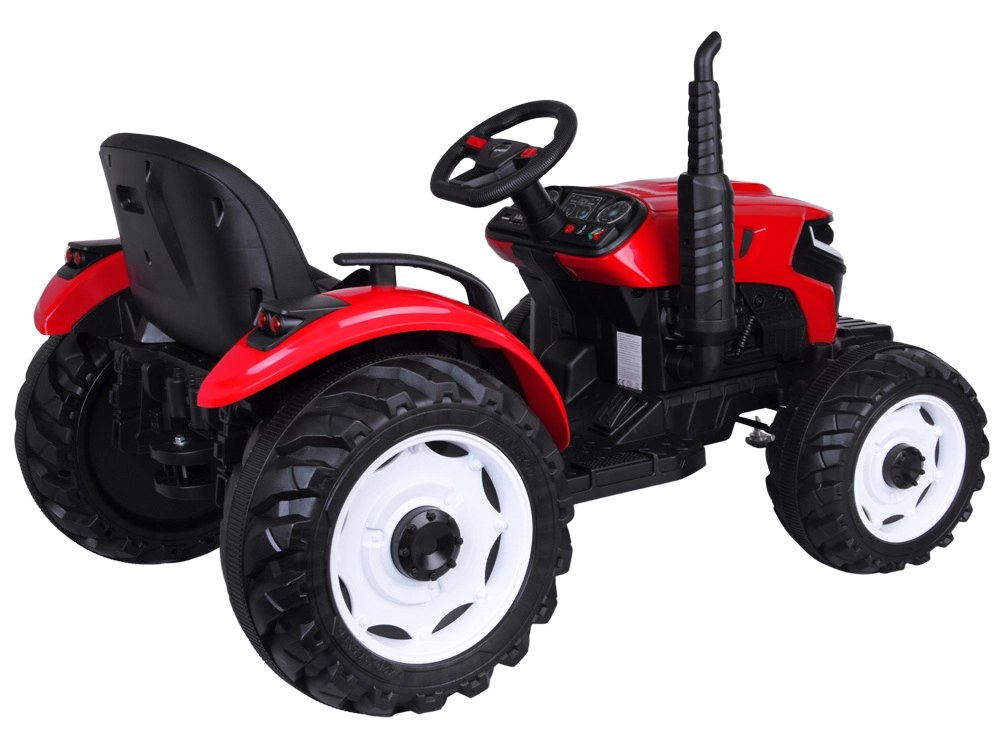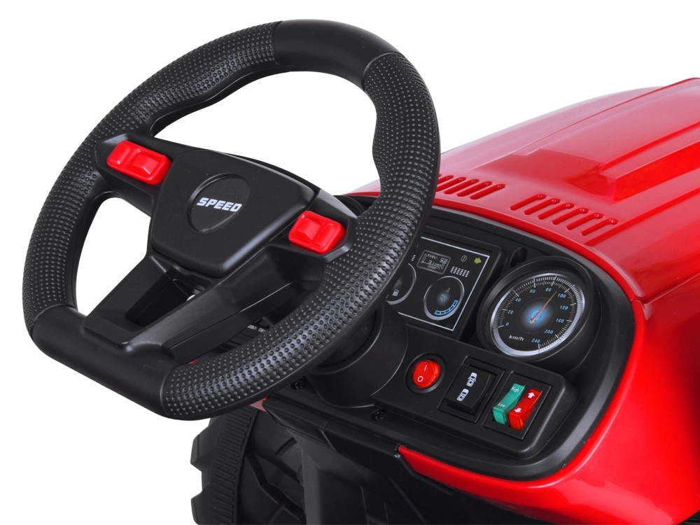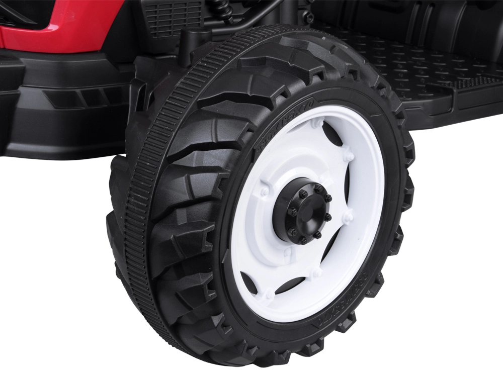 Tento červený detský traktor kombinuje realistický vzhľad s chytrými funkciami pre bezpečnú a kreatívnu hru. Automatický kiper umožní jednoduché vysýpanie nákladu z prívesu, funkciu možno vypnúť prepínačom pod kapotou. Odnímateľná lopatka rozšíri možnosti hry na záhrade aj na dvore.