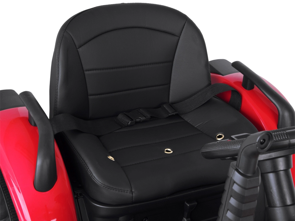 Dva výkonné motory (2×200 W) napájané akumulátorom 24 V zabezpečujú plynulú jazdu až do cca 6 km/h. Funkcia pomalého štartu zabraňuje trhnutiu pri rozjazde. Rodičia môžu kedykoľvek prevziať kontrolu vďaka diaľkovému ovládaču. O pohodlie sa stará polstrované sedadlo s bezpečnostným pásom a stabilné široké kolesá s hlbokým dezénom.