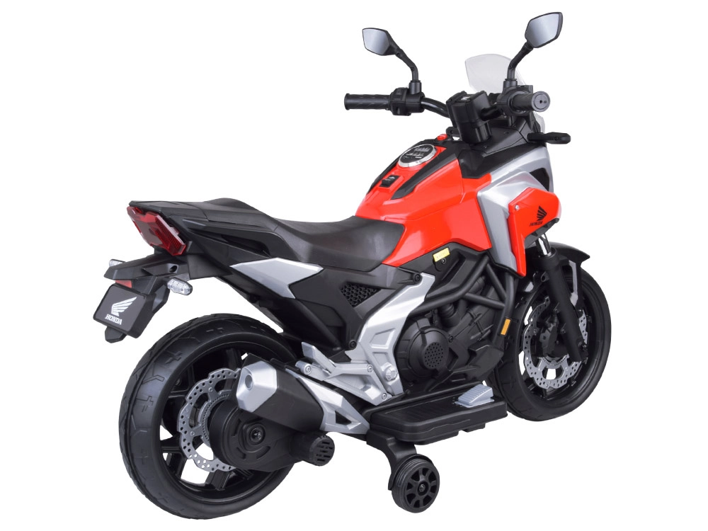 Objavte radosť z jazdy s licencovanou motorkou HONDA NC750X, ktorá zaujme verným dizajnom a premyslenou výbavou. Vďaka dvojici 12V motorov (35 W) a akumulátoru 12 V 4,5 Ah si poradí s jazdou po chodníku, na ihrisku aj doma. Stabilizačné kolieska dodajú istotu začínajúcim jazdcom a pomôžu bezpečne trénovať rovnováhu.