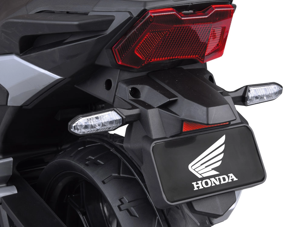 Licencovaná detská motorka HONDA NC750X ponúka realistickú jazdu s 2× 12 V motormi (35 W), akumulátorom 12 V 4,5 Ah a bočnými stabilizačnými kolieskami pre bezpečnosť. Štartuje sa tlačidlom, poteší svetlami, zvukmi motora aj hudobným panelom s USB/Mp3, klaksónom a rozprávkami. Skvelá voľba na rozvoj rovnováhy a motoriky doma aj vonku.