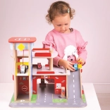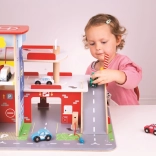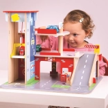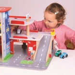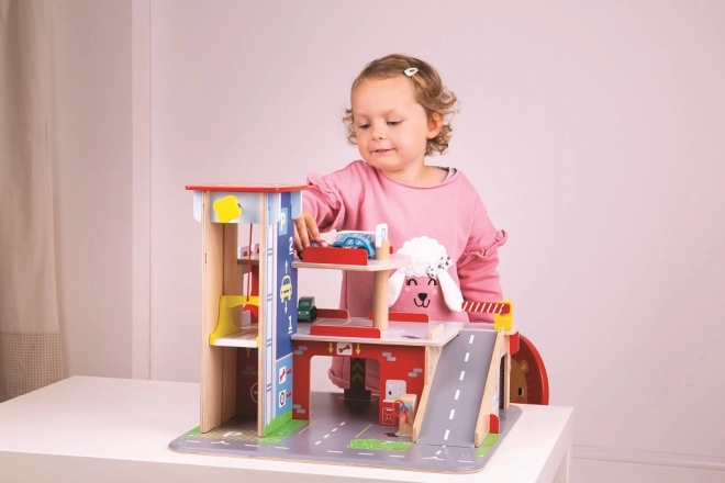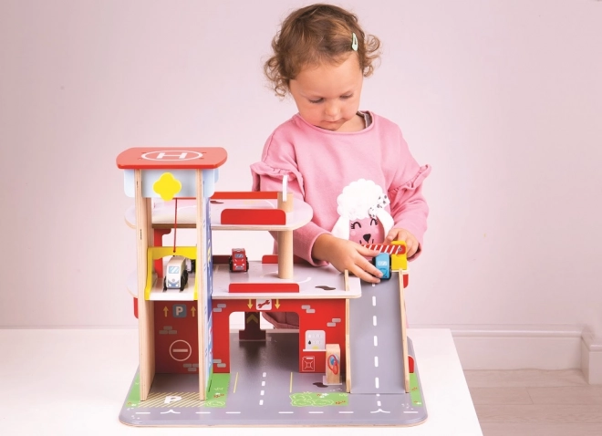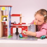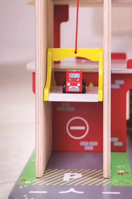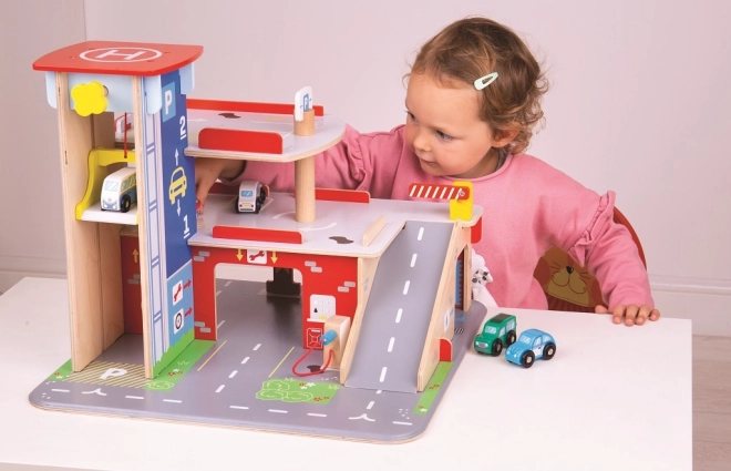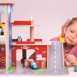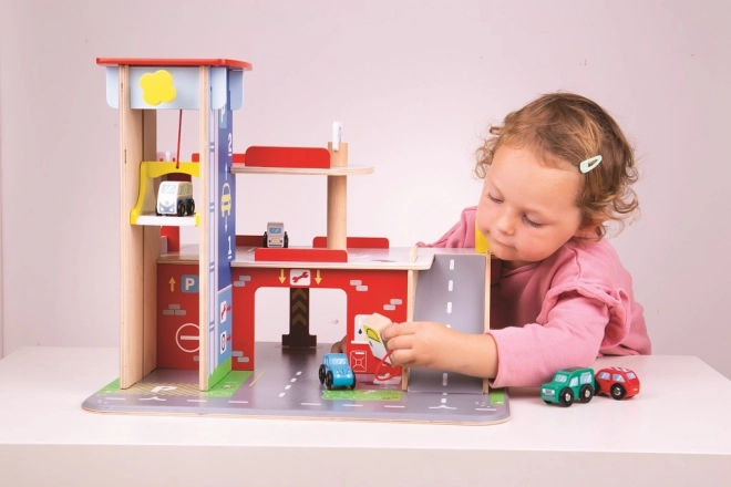 Deti si užijú zábavnú hru na každom z troch poschodí garáže s parkoviskom. Na prízemí môžu autom vojsť do funkčného výťahu a následne vyjsť až na druhé poschodie a zaparkovať. Na prízemí deti nájdu servis, umyvárku aj pumpu. Z prvého poschodia môžu autá odchádzať pomocou výťahu alebo po rampe, ale pozor, autá musia počkať na zdvihnutie závory! Najvyšším bodom garáže je heliport. Táto garáž má jednoducho všetko, čo malý vodič potrebuje na presun z bodu A do bodu B. Podporuje kreativitu a predstavivosť. Rozvíja koordináciu ruka-oko, jemnú motoriku a zručnosť. Možno doplniť autíčkami Bigjigs Toys a Bigjigs Rail. Vyrobené z kvalitných materiálov zodpovedných zdrojov. Hlavné vlastnosti: 3 poschodia s parkoviskom a heliportom, funkčný výťah, servis, umyvárka aj pumpa na prízemí