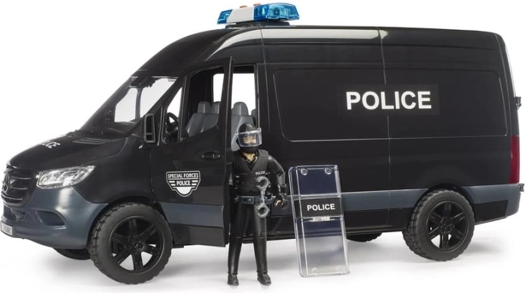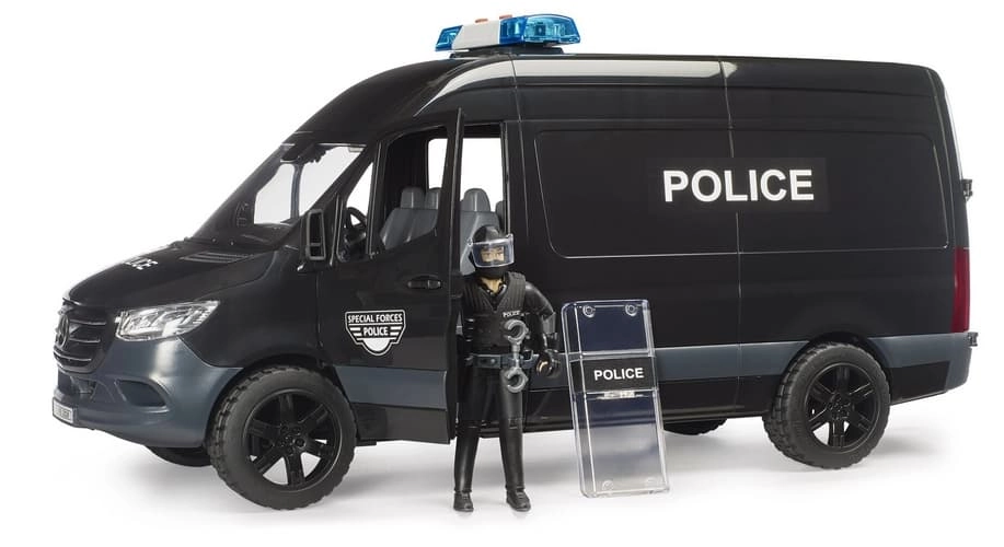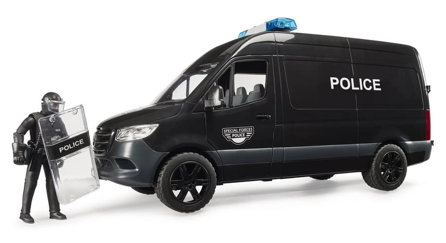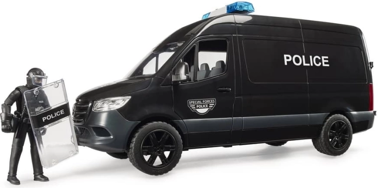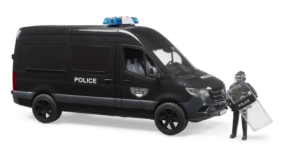 Realisticky spracovaný model policajného vozidla MERCEDES‑BENZ Sprinter prináša deťom autentické herné scenáre so zásahovou jednotkou. Vozidlo má posuvné bočné dvere, otvárateľnú kabínu a priehľadné okná z odolného plastu. Súčasťou je figúrka ťažkoodenca so štítom a príslušenstvom pre akčný role‑play.