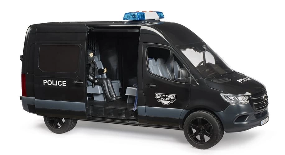 Vyrazte do akcie s ikonickou dodávkou Mercedes‑Benz Sprinter od BRUDER a figúrkou ťažkoodenca. Realistické detaily, posuvné bočné dvere, otvárateľná kabína a integrovaná cela premenia hru na napínavú policajnú misiu. Odolná konštrukcia z ABS plastu zvládne aj intenzívne hranie a rozvíja kreativitu a jemnú motoriku detí.