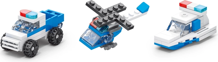 Táto kreatívna policajná stavebnica prináša deťom možnosť postaviť si celú zásahovú jednotku – od hliadkových áut cez vrtuľník až po čln. Vďaka rozmanitým dielikom môžu malí stavitelia zakaždým zložiť iný model a rozvíjať tak jemnú motoriku, kreativitu aj logické myslenie.