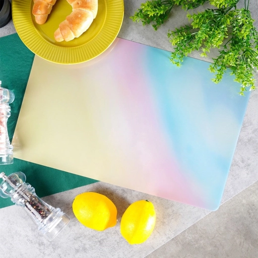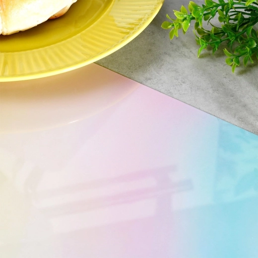 Vneste na stôl jemnú farebnosť a poriadok. Táto podložka s pastelovým prechodom poskytne vašej jedálenskej tabuli dekoratívny základ a účinne ochráni dosku stola pred teplom, vlhkosťou a nečistotami. Vďaka rozmeru 43,5 × 28,5 cm skvele sadne pod tanier, misku aj tácku.