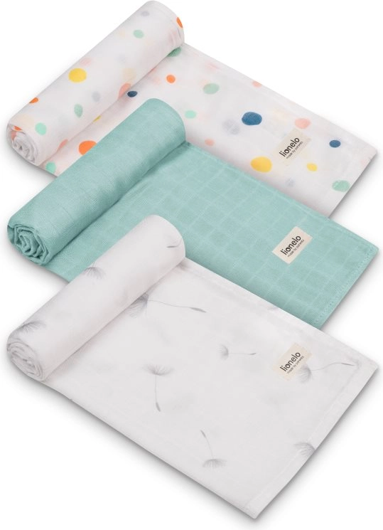 Praktická sada troch mušelínových plienok LIONELO z jemnej 100% bambusovej tkaniny na každodennú starostlivosť o bábätko. Sú mimoriadne hebké, priedušné a vďaka termoregulačným vlastnostiam v lete chladia a v zime hrejú. Plienky majú antibakteriálne, protiplesňové a antialergické účinky a skvele sajú vlhkosť aj pachy. Ideálne na zavinovanie, dojčenie, prebaľovanie aj ako ochrana oblečenia.